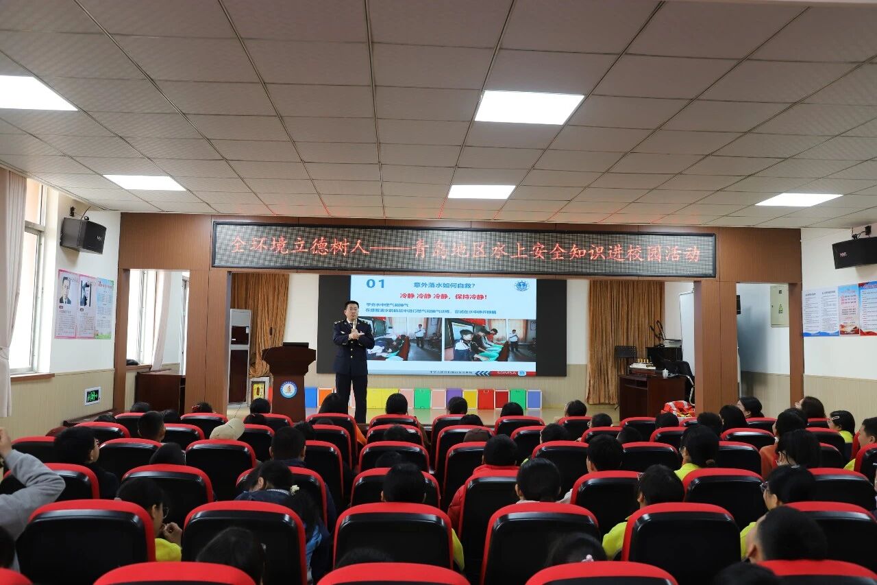 活动邀请了董家口海事局的海事专家志愿者,志愿者们为学生们讲解水上求生和航海科普知识,开展应急救援技能培训,将水上安全与航海科普知识送进校园,泊里小学百余位师生参加了此次活动。