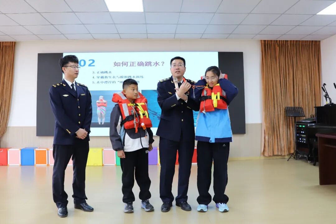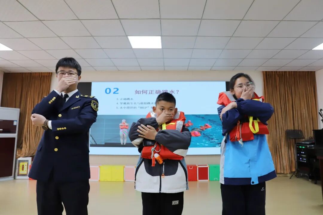 活动中,海事志愿者还以贴近生活的案例,深入剖析了事故原因和教训,教授学生进行水上遇险后的自救和施救、发生溺水事故后的应急处置等,为学生带来了一场精彩生动的“水上安全和防溺水”技能培训,并向学生们赠送了精美的航海科普卡片等礼物。一个小时的讲座,学生们全程高能互动,兴致满满。