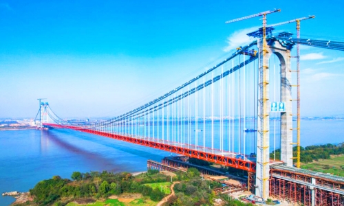 11月22日,世界最大跨径四主缆悬索桥湖北燕矶长江大桥成功合龙。在这项总用钢丝量可环绕地球八圈的超级工程中,青岛特钢研发制造的2100兆帕超高性能桥梁缆索镀锌钢丝以超高的强度与稳定性,为这座“悬浮于长江上的钢铁长城”注入了强大的“青钢力量”。