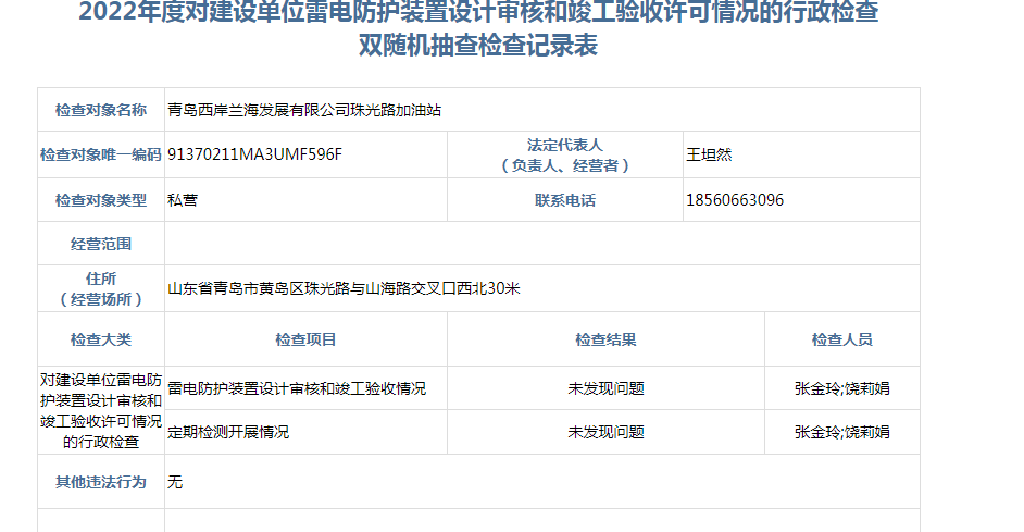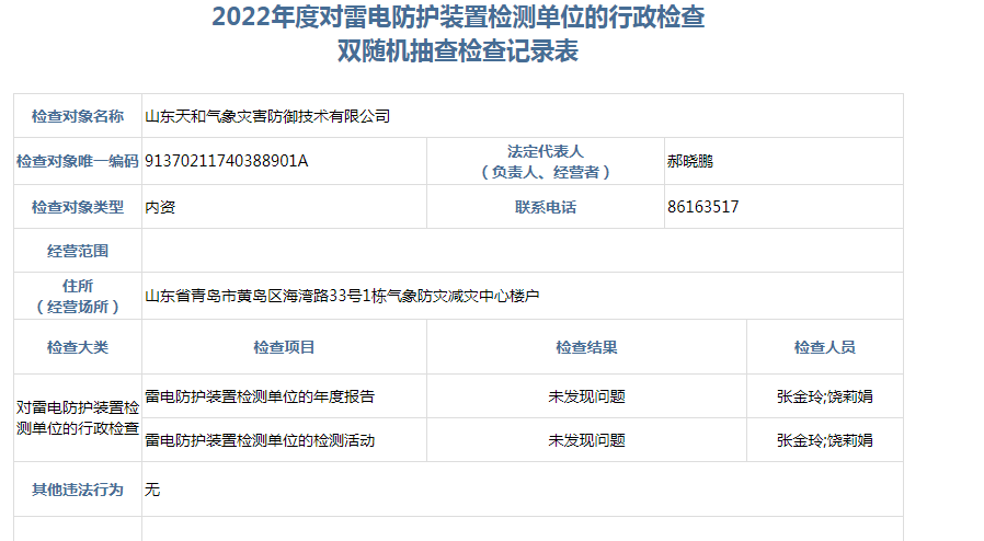 黄岛区气象局2022年“双随机、一公开”部门内部检查结果