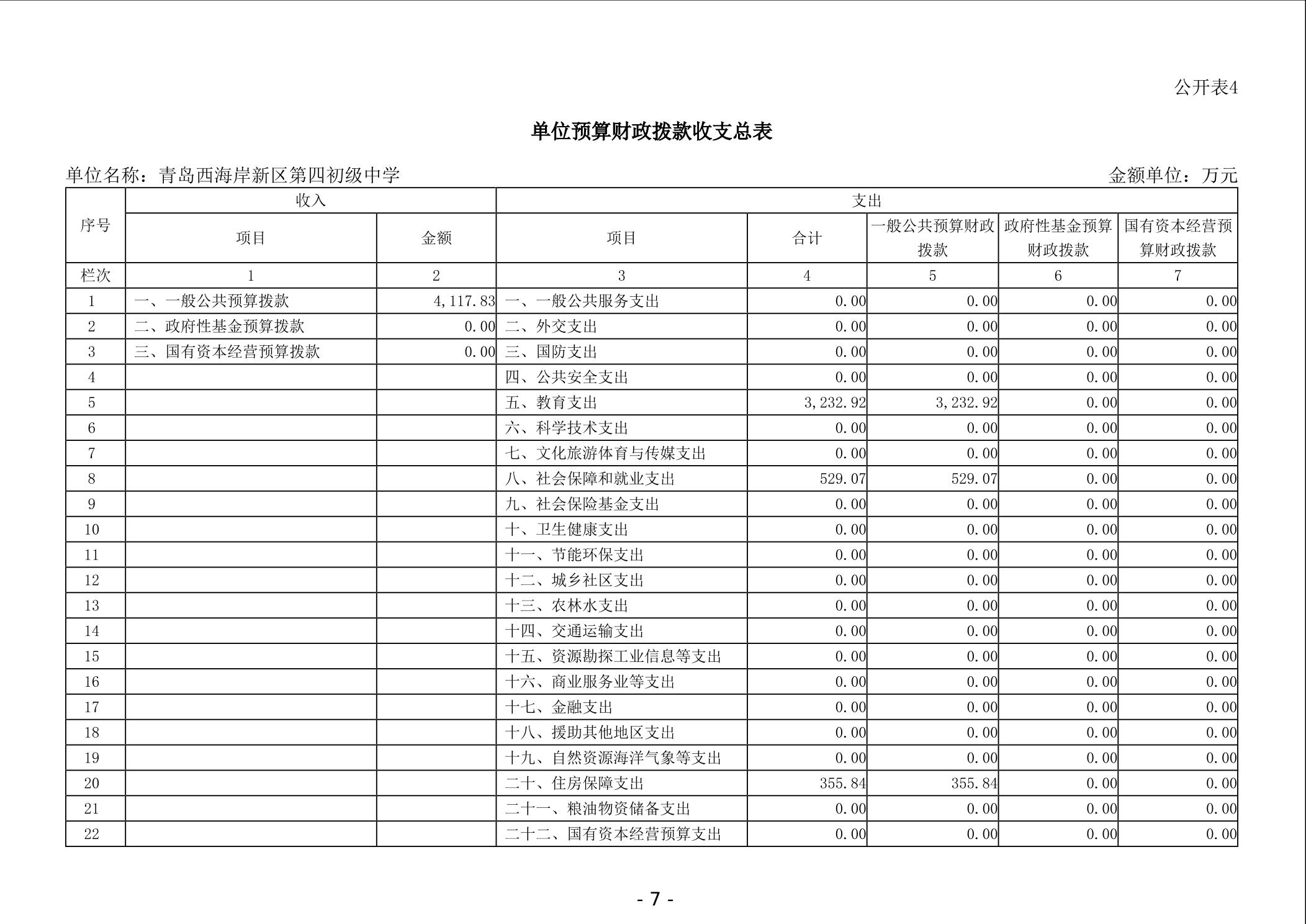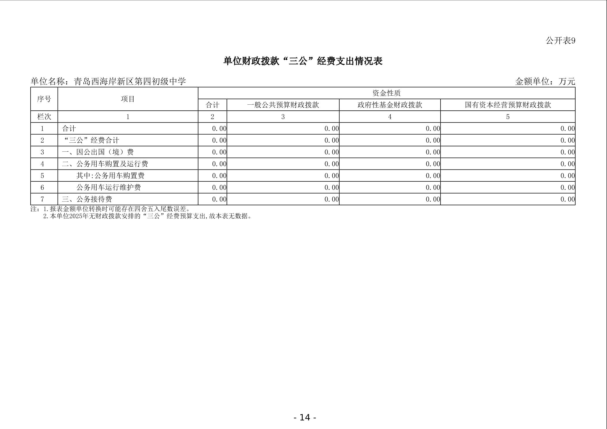 青岛西海岸新区第四初级中学2025年决算