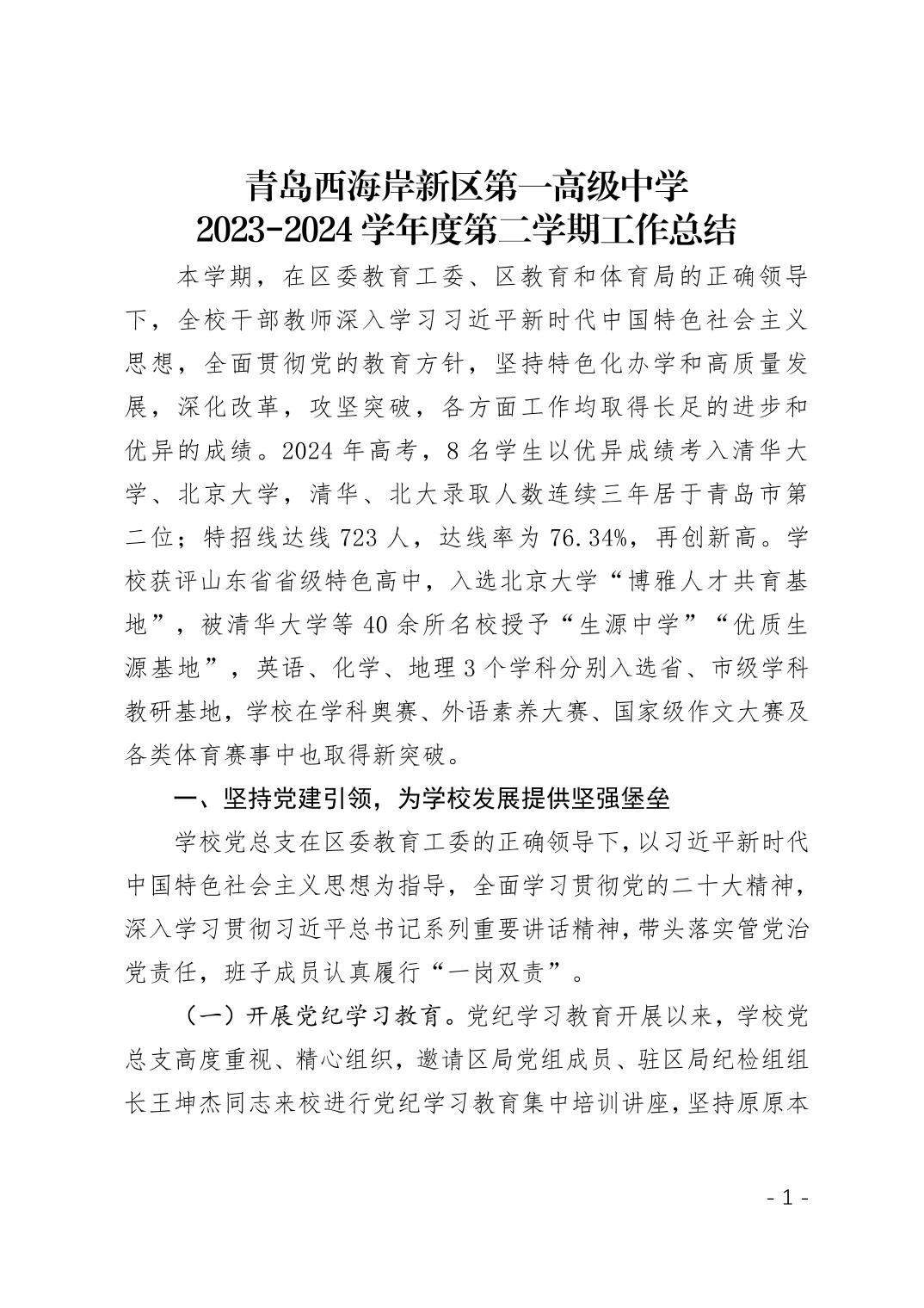 青岛西海岸新区第一高级中学2023-2024第二学期工作总结.pdf