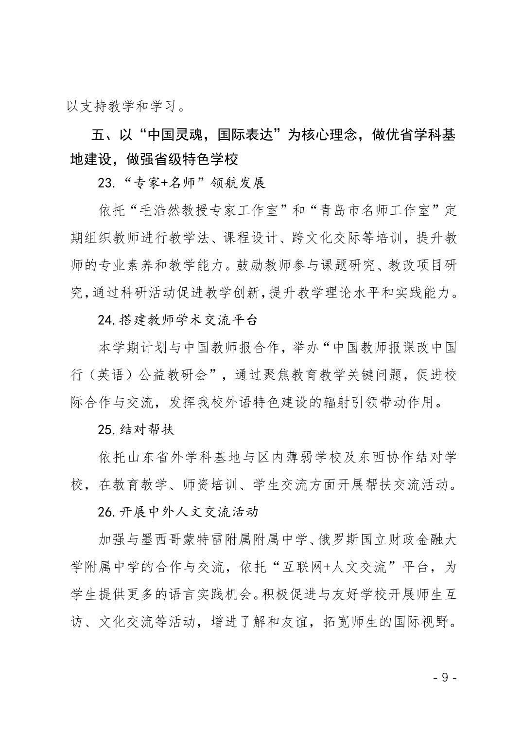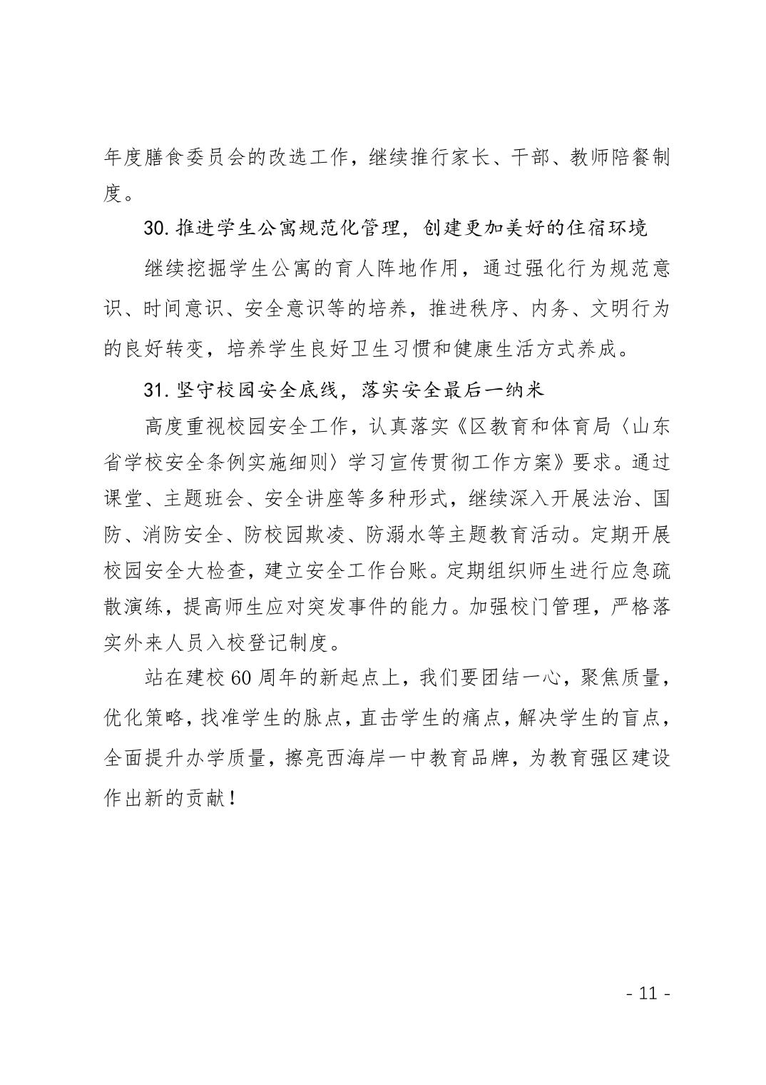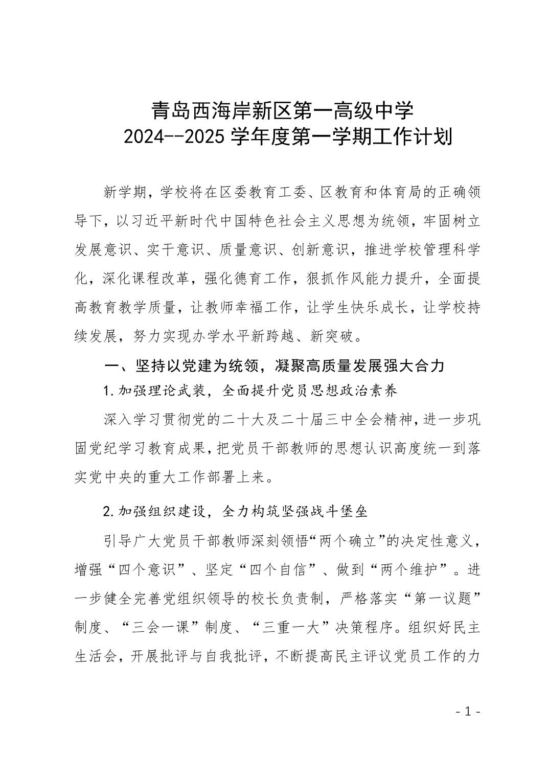 青岛西海岸新区第一高级中学2024—2025学年度第一学期工作计划