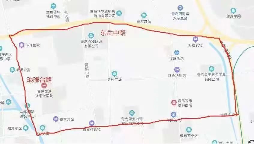 琅琊台路以东、大珠山中路以西、东岳中路以南、铁橛山路以北的区域;