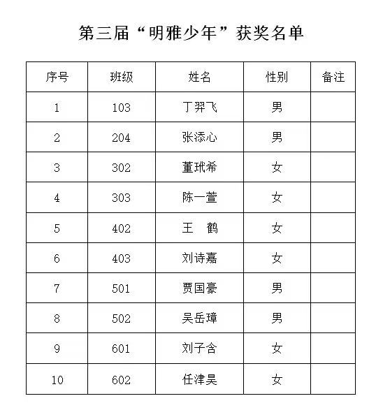 附件1:第三届“明雅少年”获奖名单