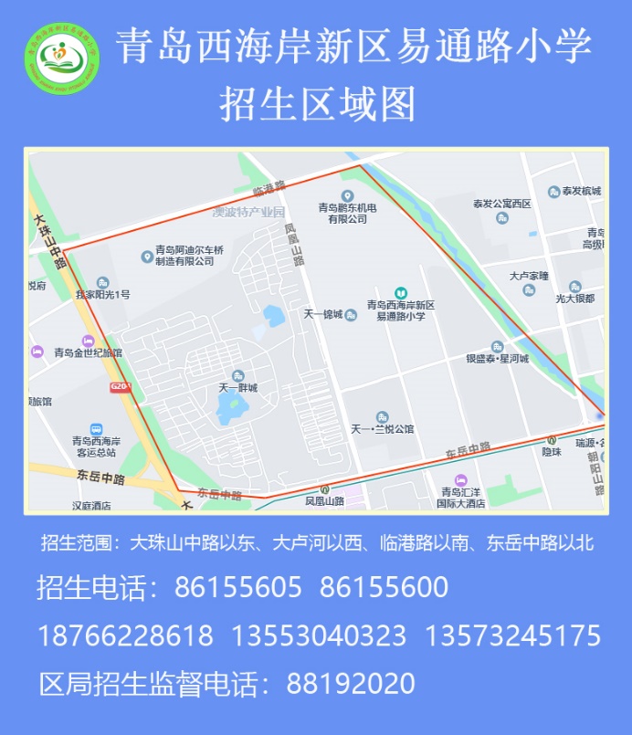 青岛西海岸新区易通路小学招生区域分布图