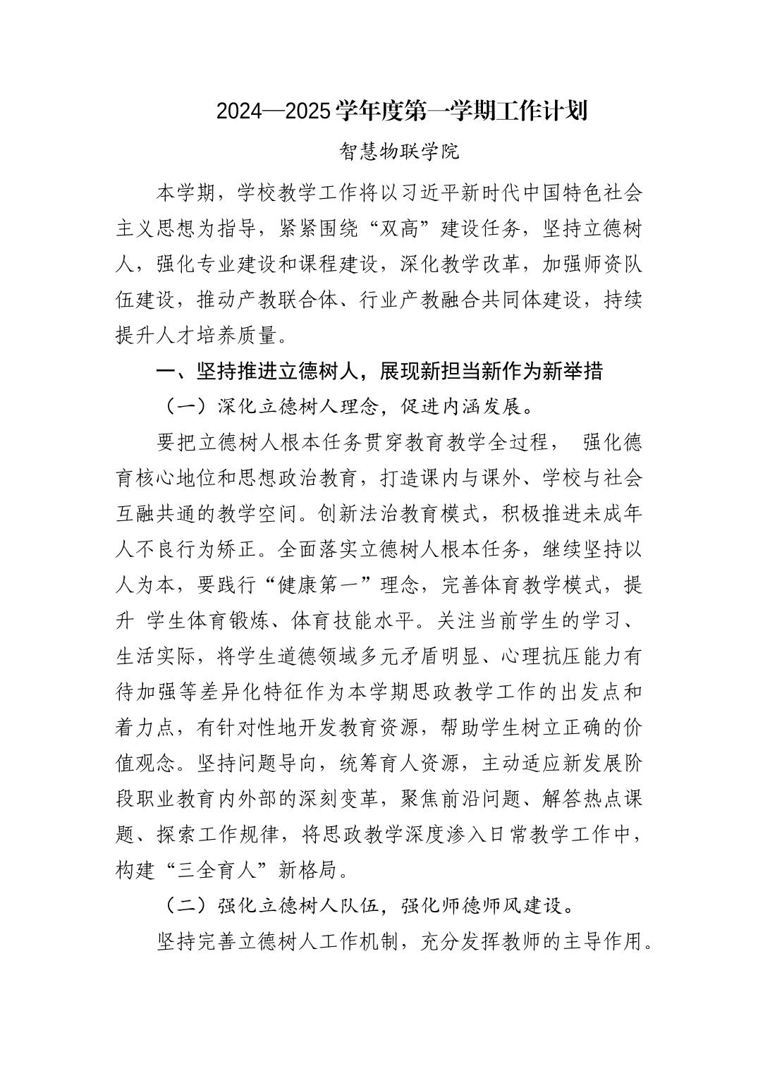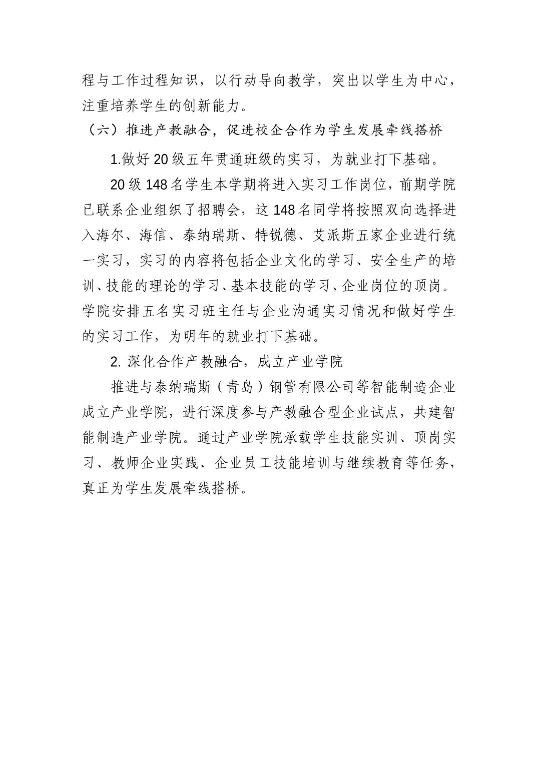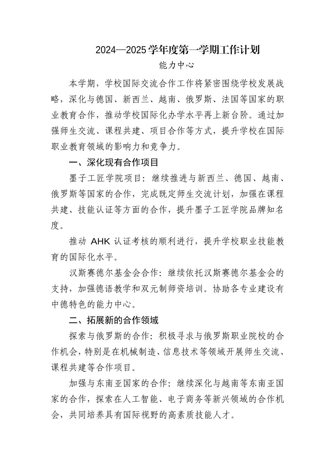 青岛西海岸新区中德应用技术学校2024—2025学年度第一学期学校工作计划: