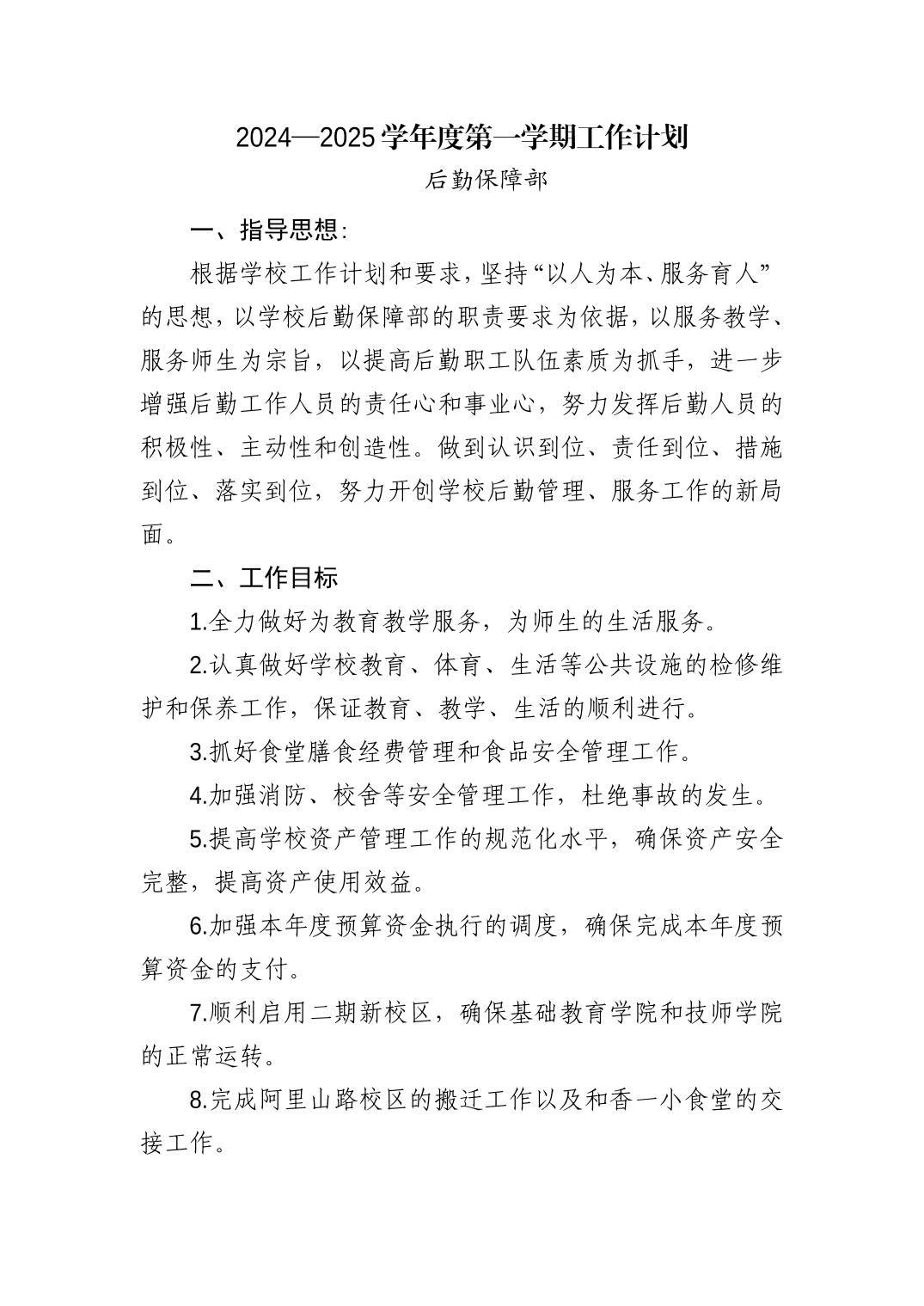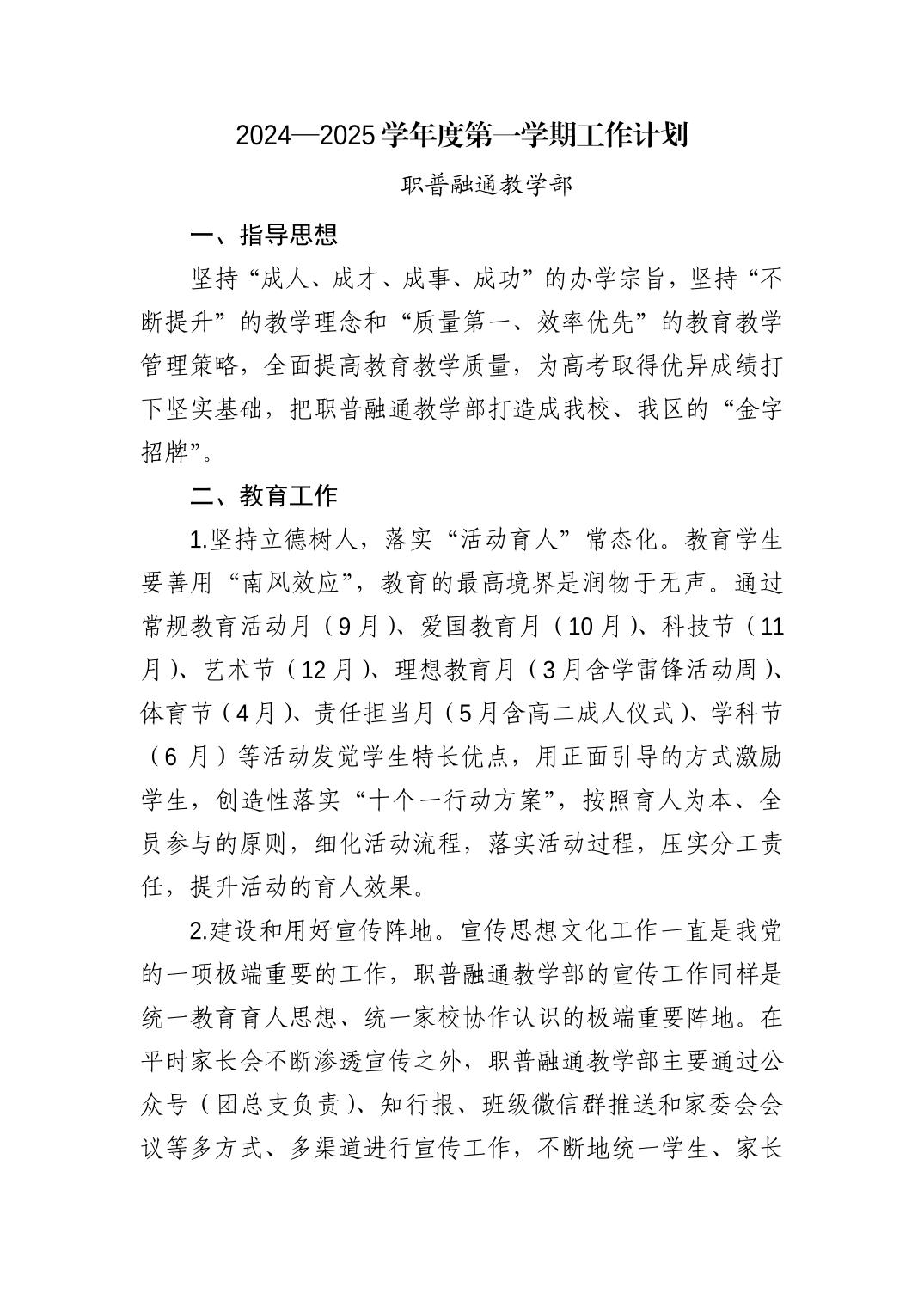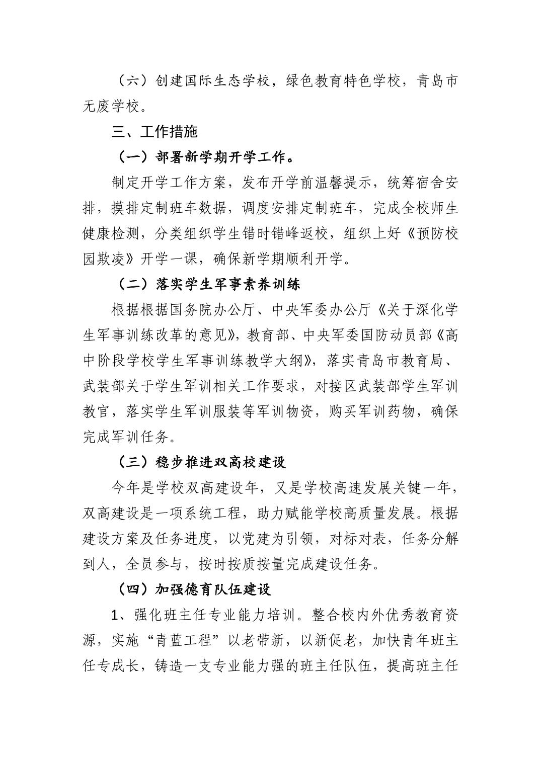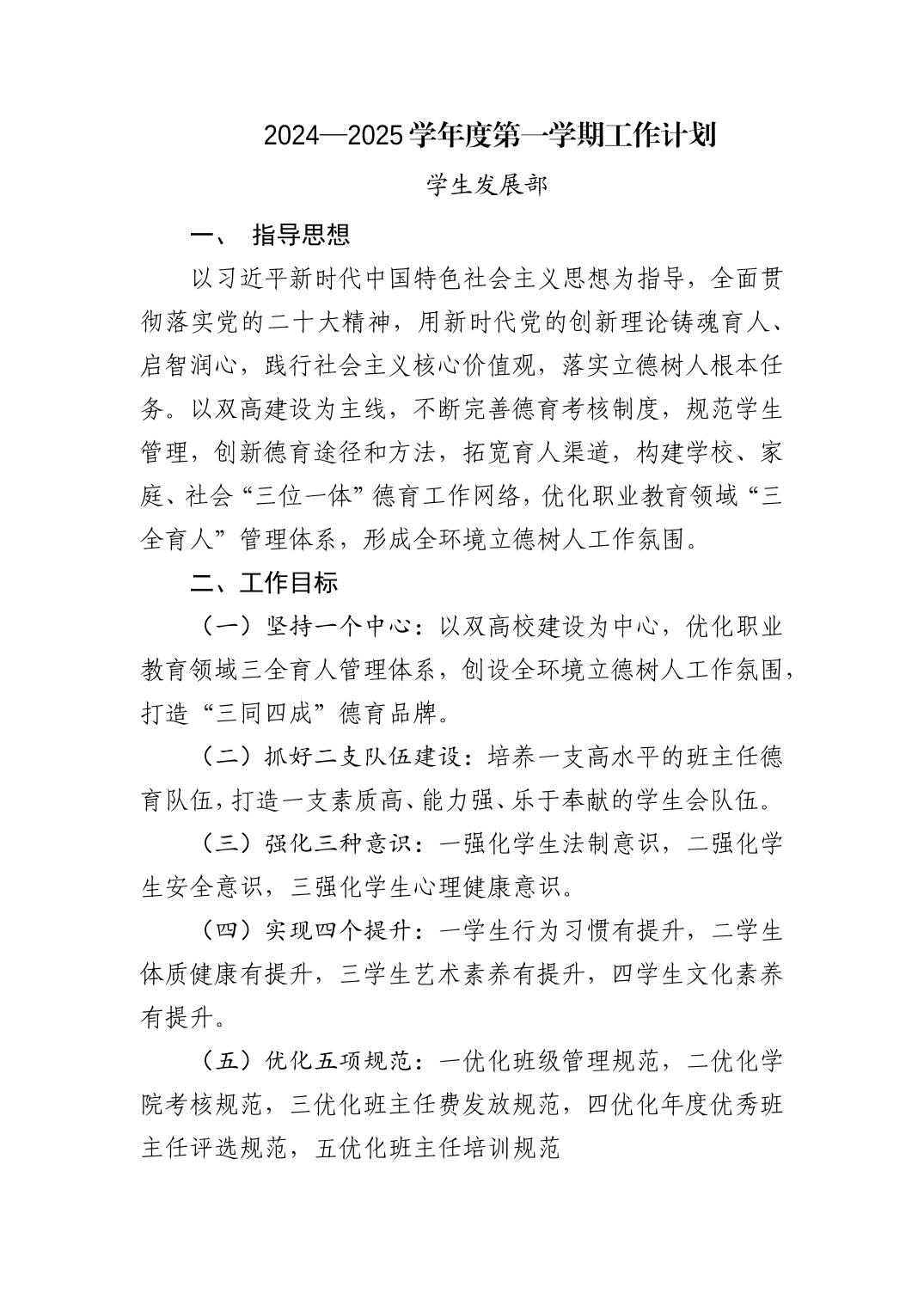 青岛西海岸新区中德应用技术学校2024—2025学年度第一学期学校工作计划: