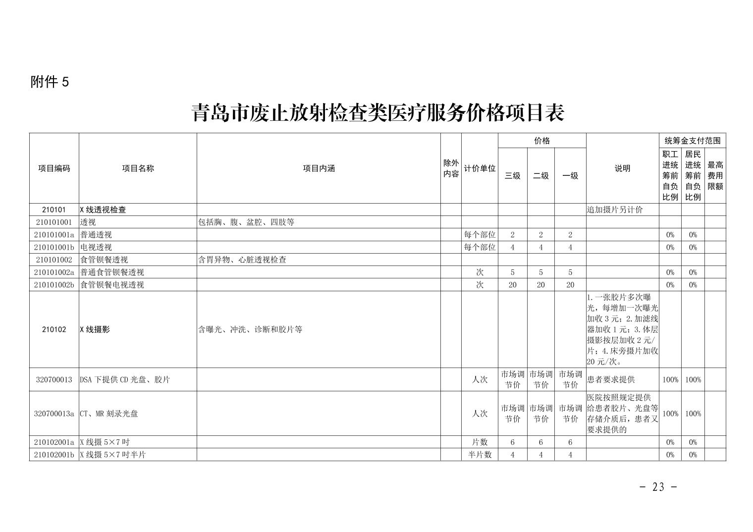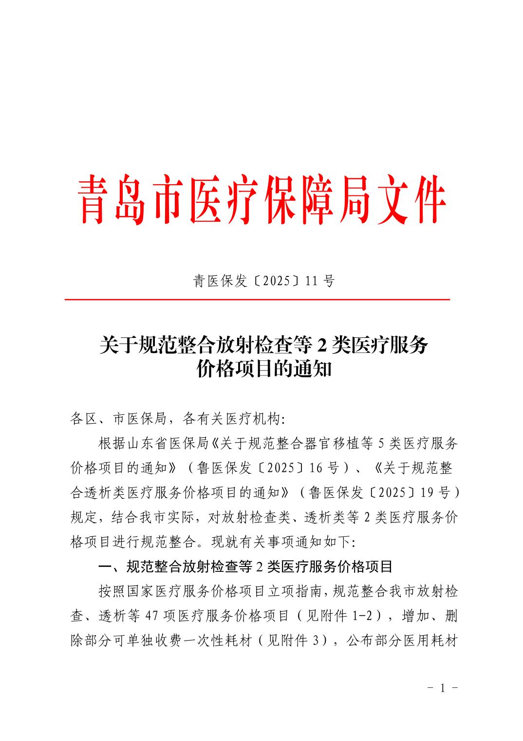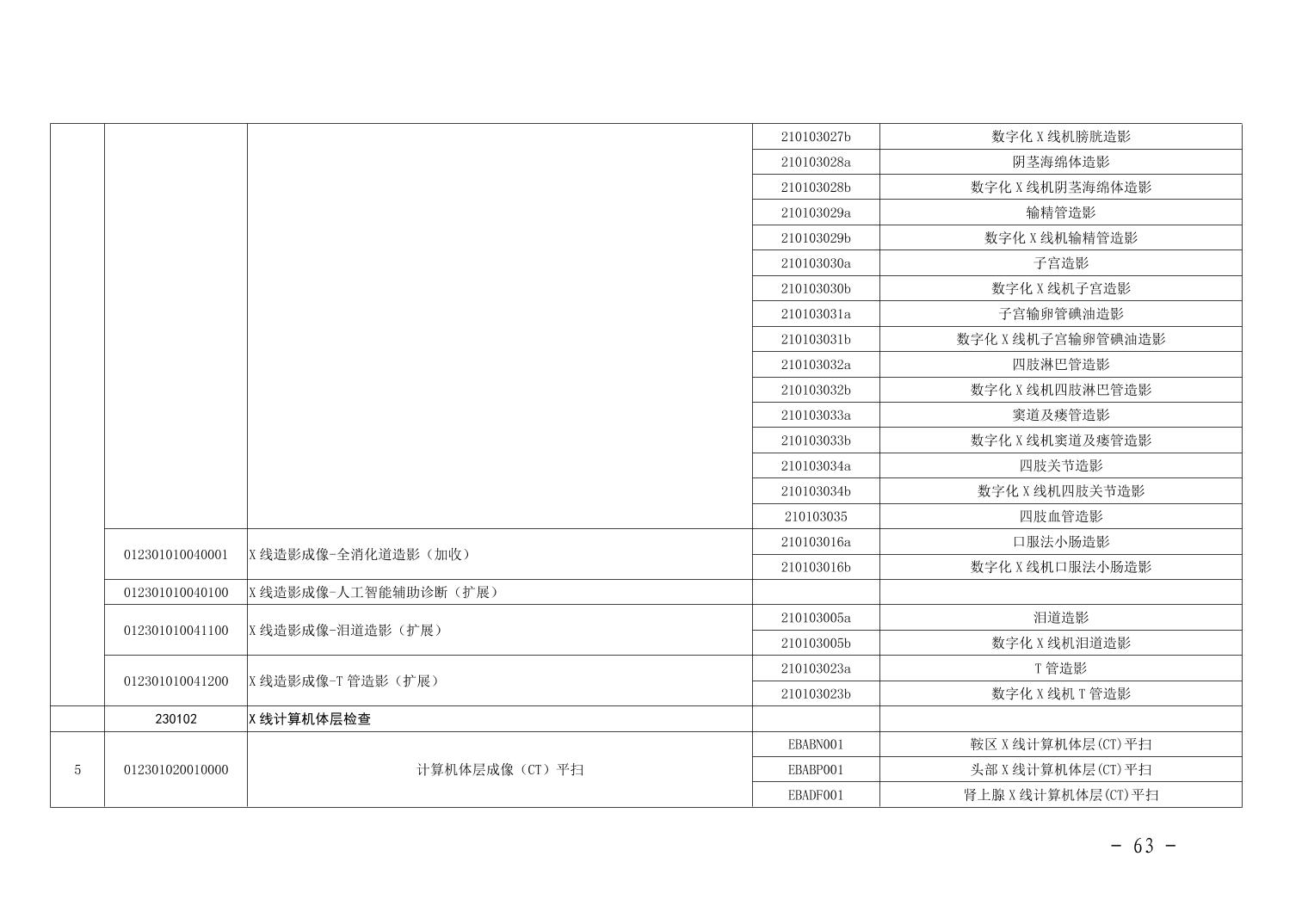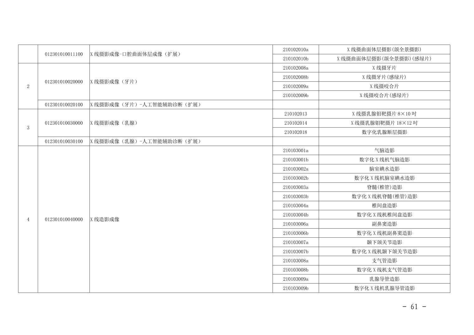 关于规范整合放射检查类等2类医疗服务价格项目的通知