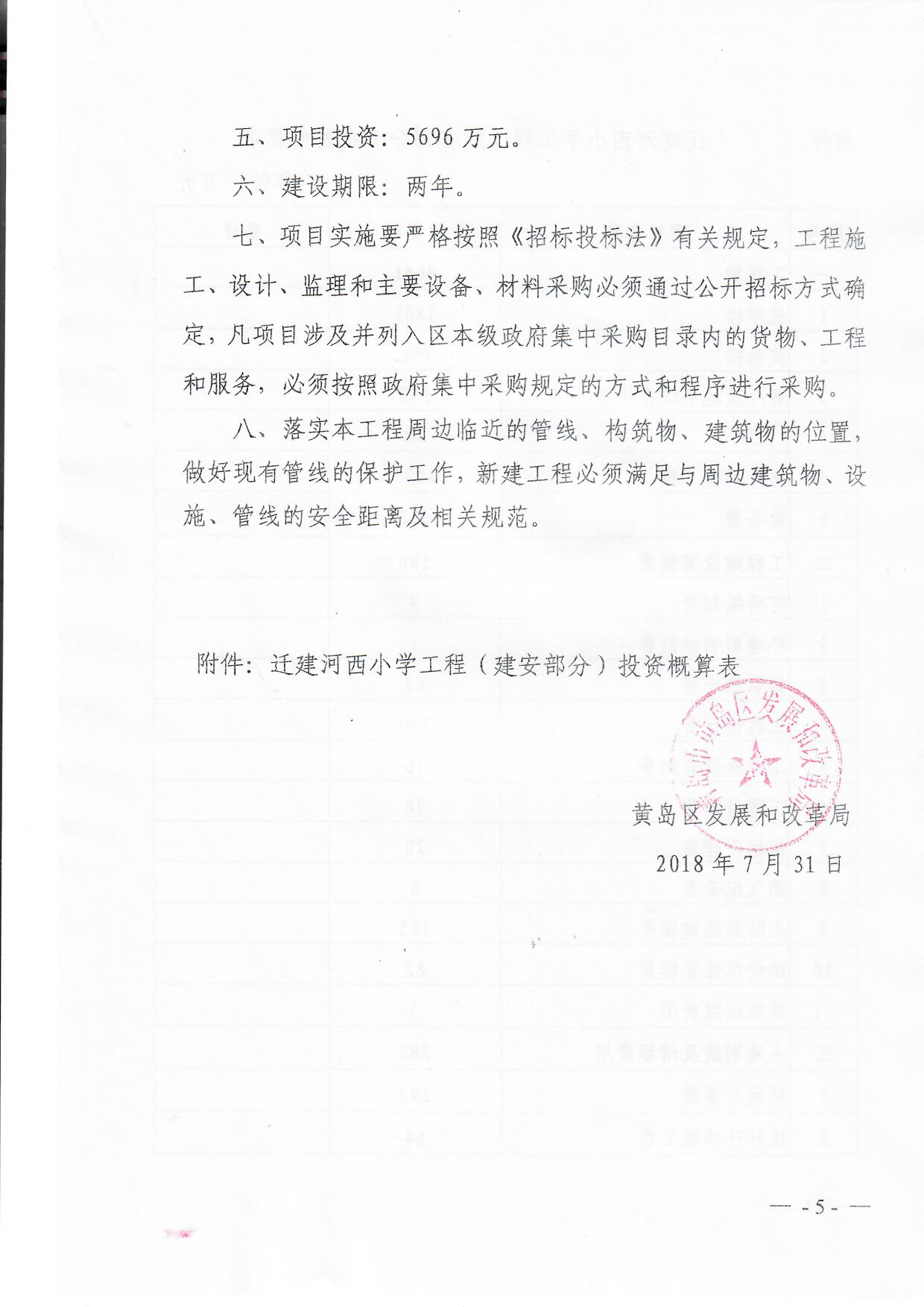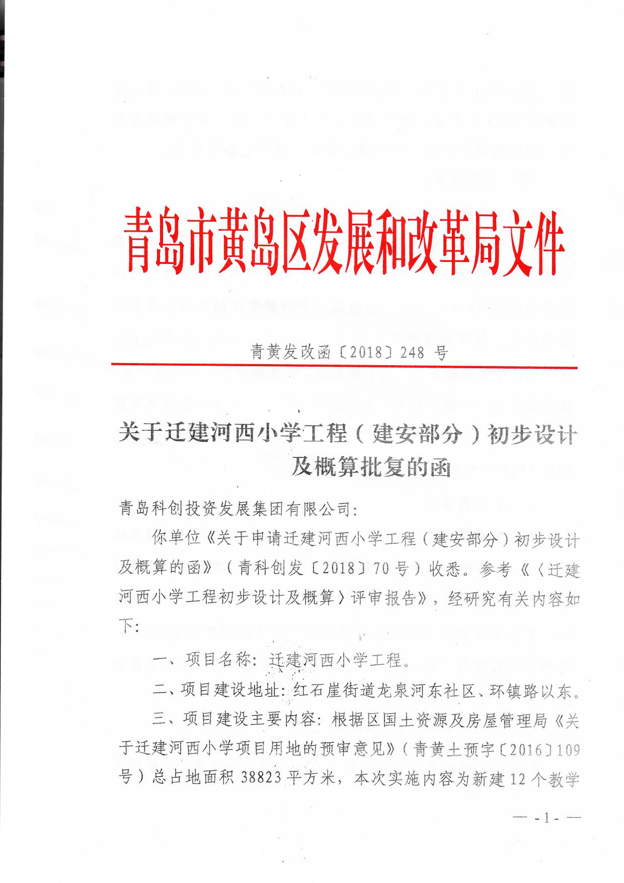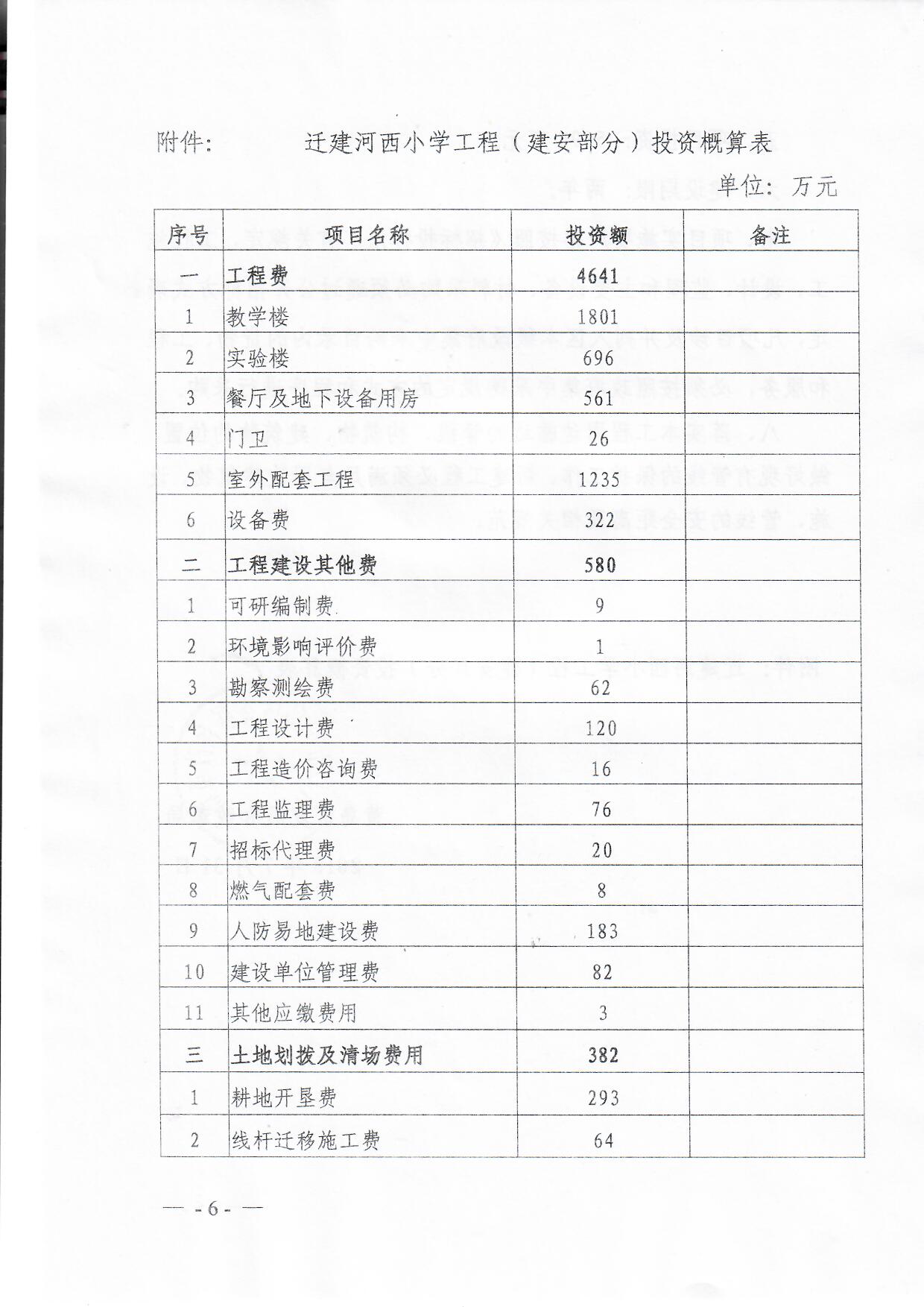建设项目初步设计及概算批复(迁建河西小学工程-建安部分)