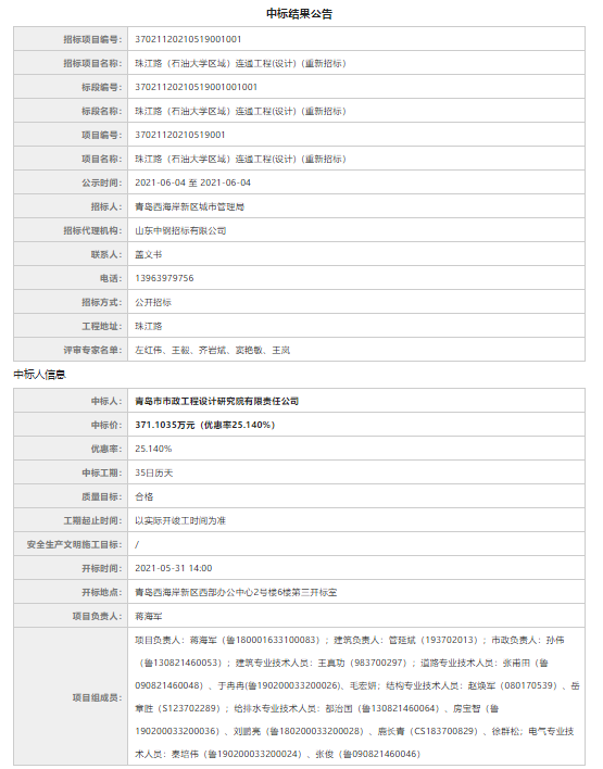 设计招标、中标公告