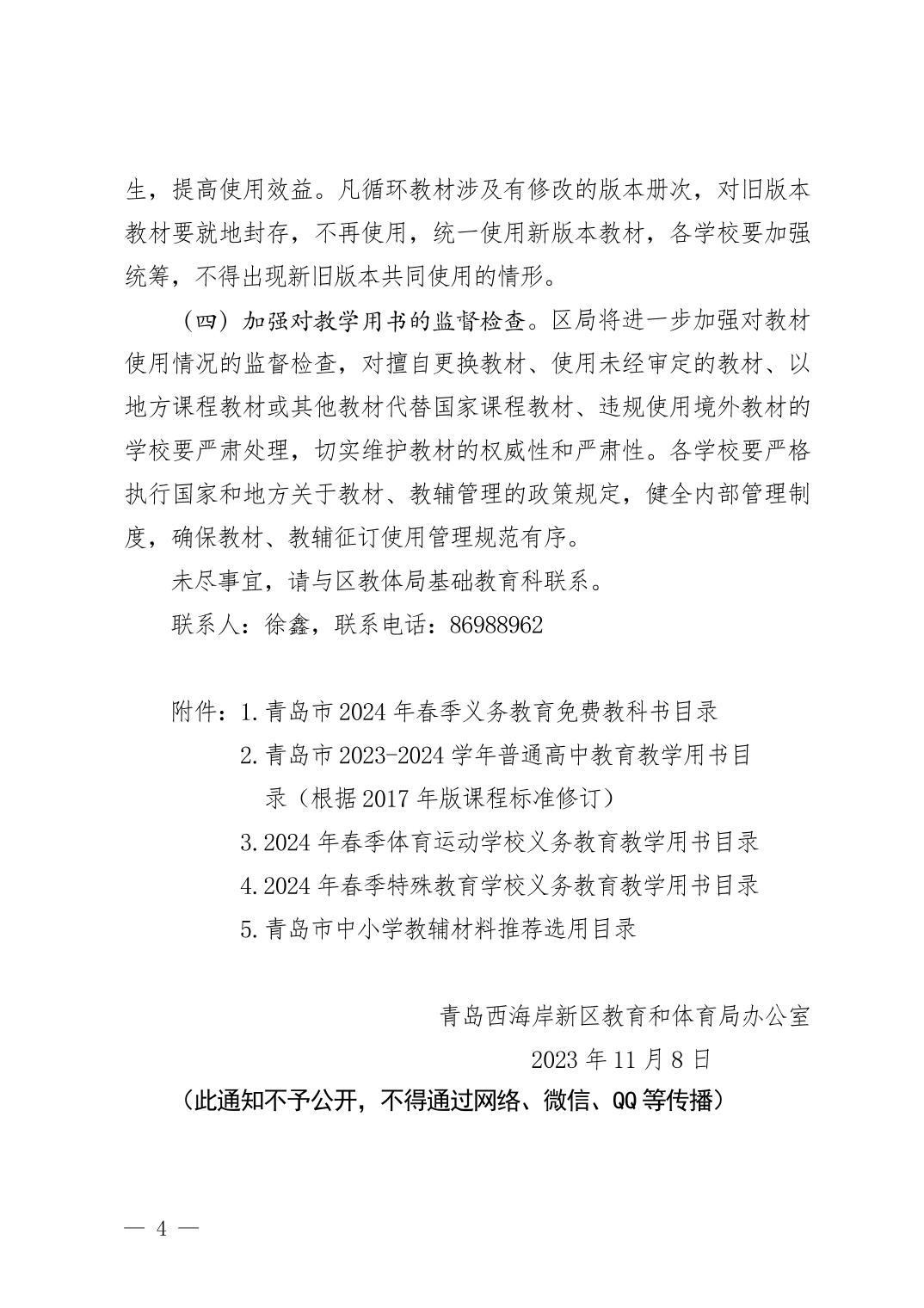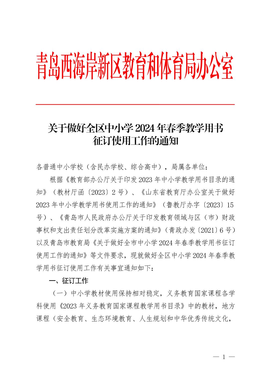 关于做好全区中小学2024年春季教学用书征订使用工作的通知