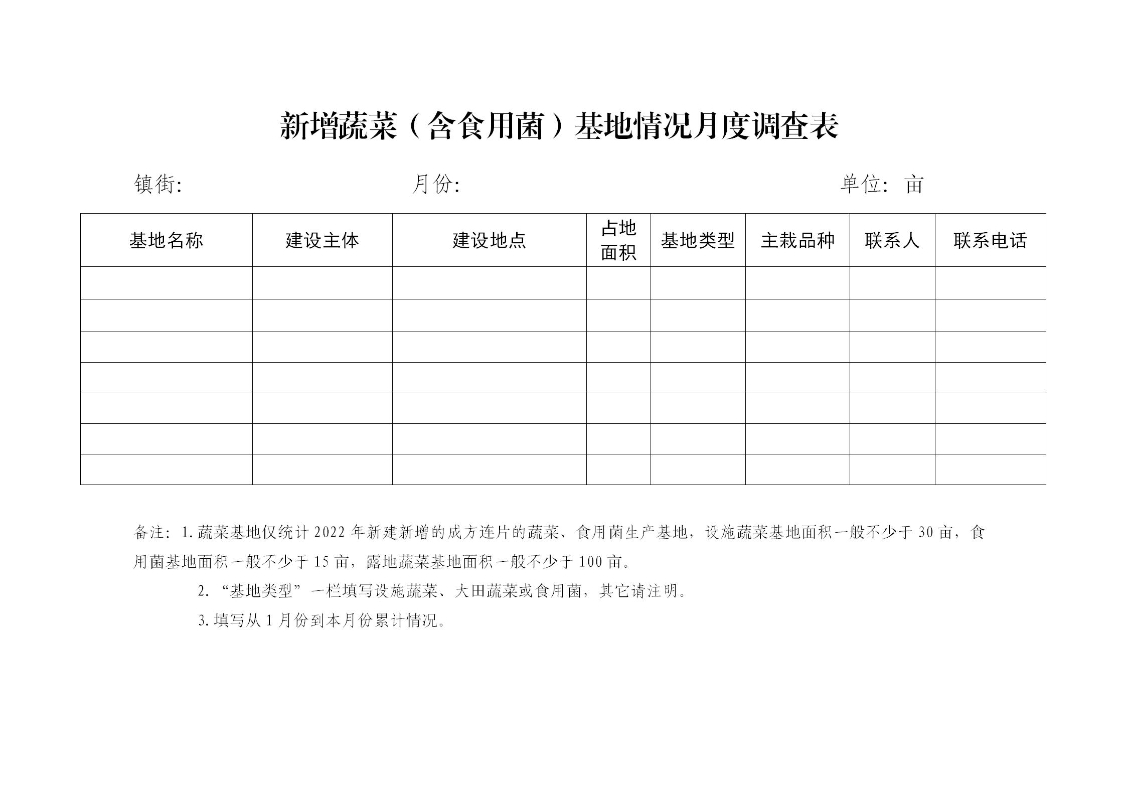 不断完善蔬菜产销信息采集、监测、预警体系,做好蔬菜生产信息监测,规范信息采集,强化产地信息监测预警。要及时根据蔬菜生产形势进行科学分析,发布产销信息,引导蔬菜种植户、经营者合理安排生产和经营活动,做好茬口安排和品种调剂,稳定市场预期,促进蔬菜均衡供应和价格基本稳定,确保蔬菜供应不断档、不脱销。为掌握全区蔬菜生产情况,从9月份到11月份,实行蔬菜生产信息月报制度(附件2、3、4),当月月底前通过金宏网分别报“西海岸新区农业农村局种植业和农机管理科”和“西海岸新区农业农村局农技推广服务科”。