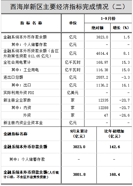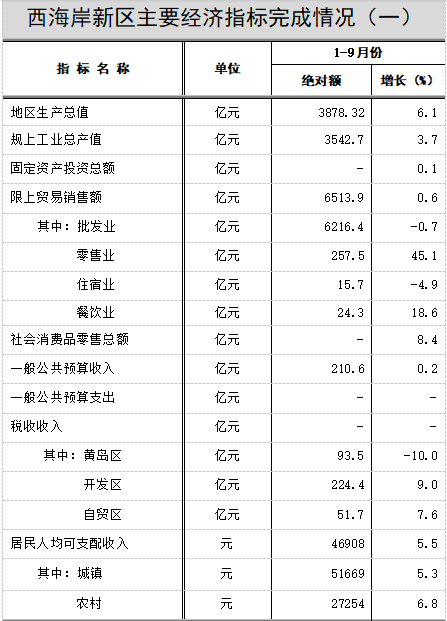 2024年1-9月份青岛西海岸新区主要经济指标完成情况