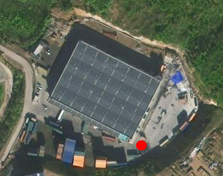 (图三) 事发位置图(红点位置) (图四) 现场斜坡位置 ( 图五) 叉车侧翻位置
