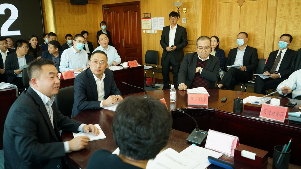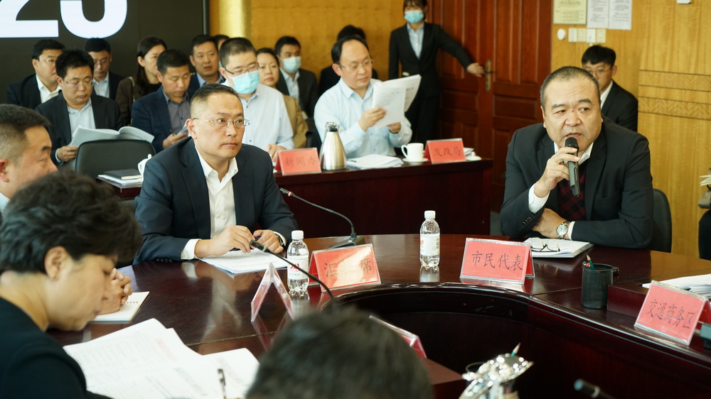 ▲市民代表夏旭(右一)在会议上发言