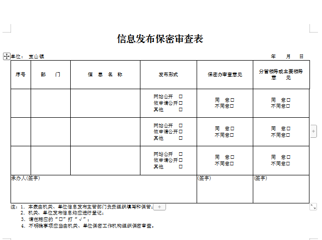 三是严抓制度落实。一方面强化信息公开保密意识,要求全体机关干部签订保密协议书,进一步强化重点保密部门人员的思想意识,提升业务综合能力,防止因把关不严、公开不当造成泄密事件,确保信息安全。另一方面严格信息发布审核机制,规范信息采编、审核、发布工作流程,按照“谁公开、谁审查”“先审查、后公开”的原则,建立完善信息发布台账,经业务承办人、业务负责人、分管领导三级审核后发布,保障政府信息公开工作的及时性、准确性和严肃性,确保信息保密工作落到实处。
