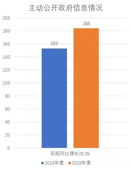 2019年,结合我镇实际情况,围绕群众关注关切的财政预决算、城镇规划、安全生产、民生服务等重点领域主动公开政府信息184条,同比增长20.3%。